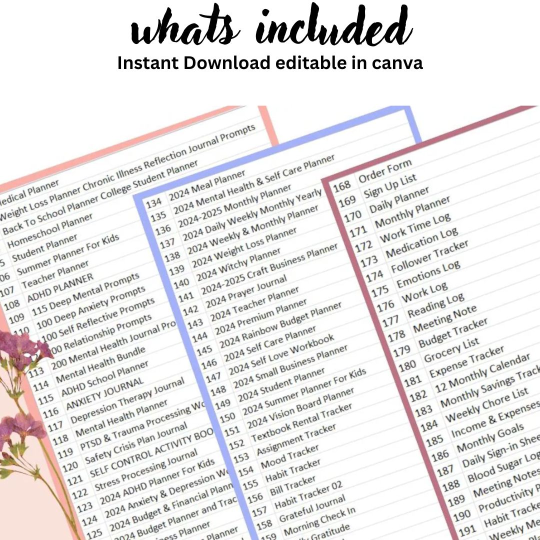 This bundle includes 15,000+ Pages PLR Planners, Journals, Trackers, and Printable are 100% editable in Canva.